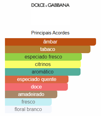 The One for Men Eau de Parfum de Dolce&Gabbana é um perfume Amadeirado Especiado Masculino. As notas de topo são: Toranja, Coentro e Manjericão. As notas de coração são: Cardamomo, Gengibre e Flor de Laranjeira. As notas de fundo são: Âmbar, Tabaco e Cedro.